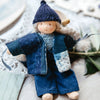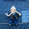 Poupées mini en série limitée et numérotée de 20 pièces pour les 20 ans d'Happy to see you. Chaque poupée porte un pantalon en indigo naturel, une veste en indigo naturel et patch de tissus anciens japonais cousus à petits points par Astrid @nilshappytoseeyou, un pull tricoté main en indigo végétal, une écharpe et un petit bonnet. Elles mesurent 17cm environ avec la peau couleur vanille et les cheveux blancs pailletés à mèches beiges. La petite poupée est en jersey de coton biologique, le rembourrage en pure laine vierge bio et les cheveux en mohair nattés. Chaque poupée est une pièce unique cousue à la main en France dans notre petite atelier sur la côte Atlantique. De légères variations sont présentes d'un modèle à l'autre et attestent d'un travail à la main, artisanal. La poupée est livrée dans un sachet de coton bio + un sac en coton indigo.