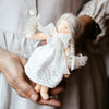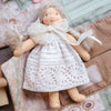 Poupées mini en série limité de 20 pour les 20 ans d'happy to see you. Chaque poupée est numérotée et porte une robe et un noeud taillés dans des dentelles anciennes. Elles mesurent 17cm environ avec la peau couleur vanille et les cheveux blanc pailletés à mèches beiges.. La petite poupée est en jersey de coton biologique, le rembourrage en pure laine vierge bio et les cheveux en mohair nattés. Chaque poupée est une pièce unique cousue à la main en France dans notre petite atelier sur la côte Atlantique. De légères variations sont présentes d'un modèle à l'autre et attestent d'un travail à la main, artisanal. La poupée est livrée dans un sachet de coton bio.